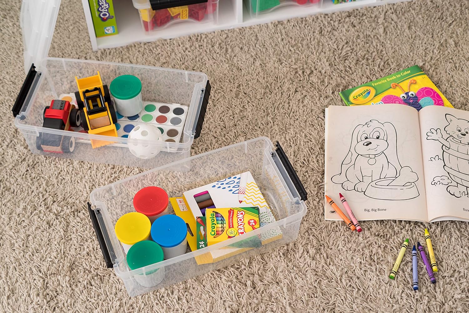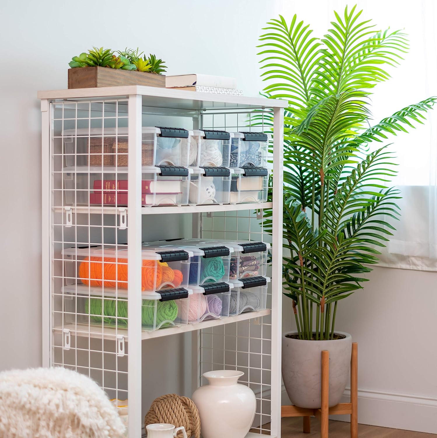 - STACKABLE STORAGE: Maximize space in your home, office, or game room. The securely locking lid keeps items safe and allows bins to be stacked on top of each other.
