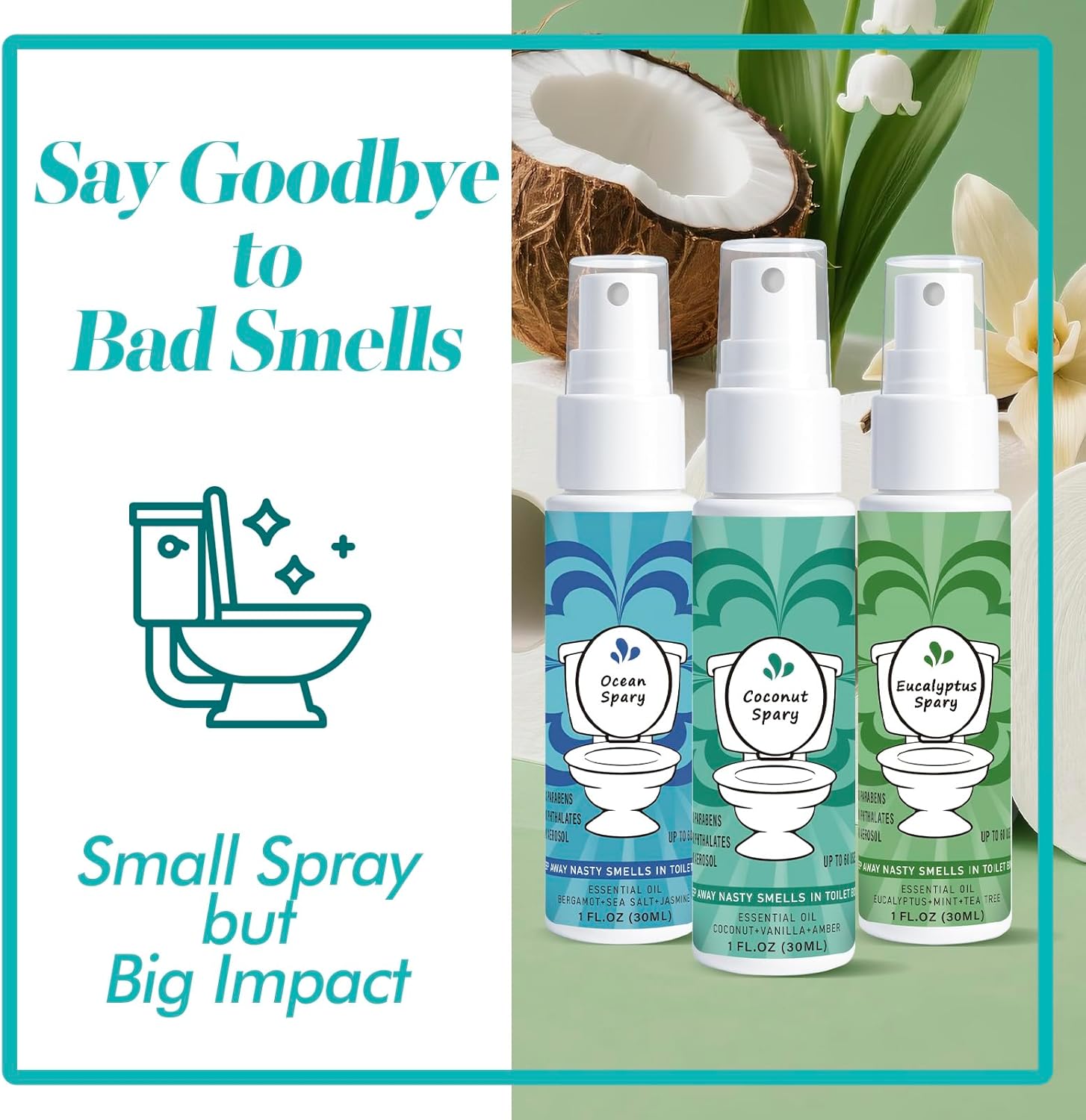 - Fresh Favorites in One Set — Ocean Breeze, crisp Eucalyptus, and creamy Coconut. From the sea’s freshness to nature’s clarity and tropical warmth, these scents refresh your toilet with every spray.