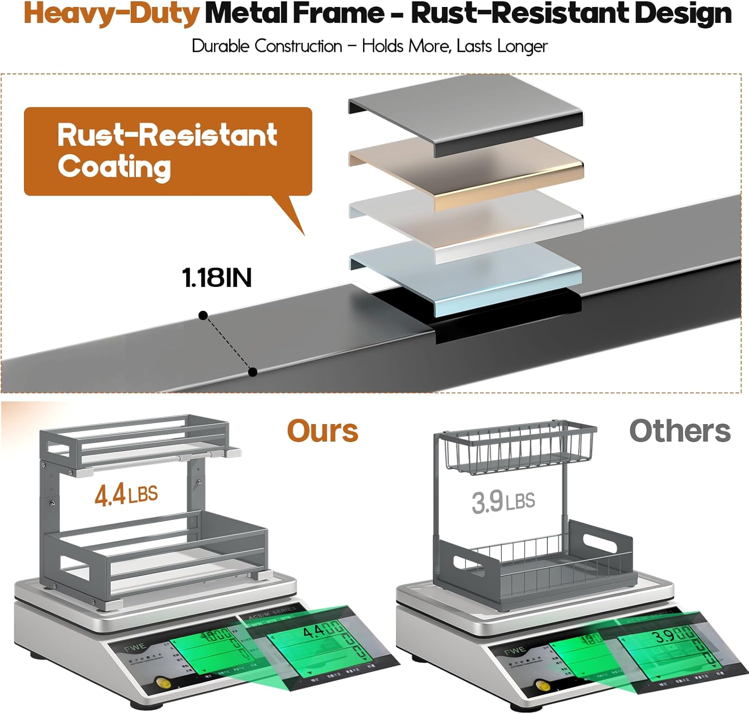 - 【Sturdy metal sheet frame& Rust-Proof】The under sink organizer is built from solid metal sheets with a strong frame and superior rust-resistant design, making it durable and ideal for long-term use in humid areas like kitchens,bathrooms and Laundry Room.