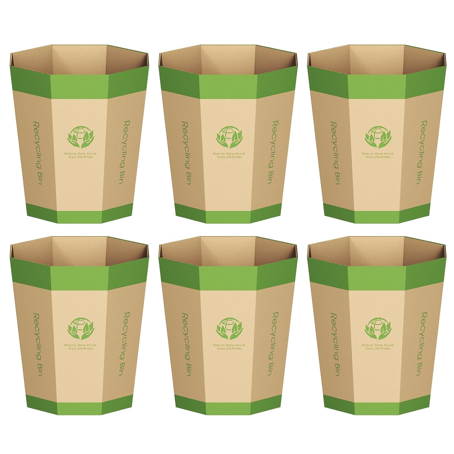 6-Pack Cardboard Trash Can – Foldable, Recyclable, Plastic-Free & Reusable Small Waste Paper Basket - Garbage Bin Perfect for Office, Bedrooms, Home, Events & Outdoor Activities (3.2 Gallon)