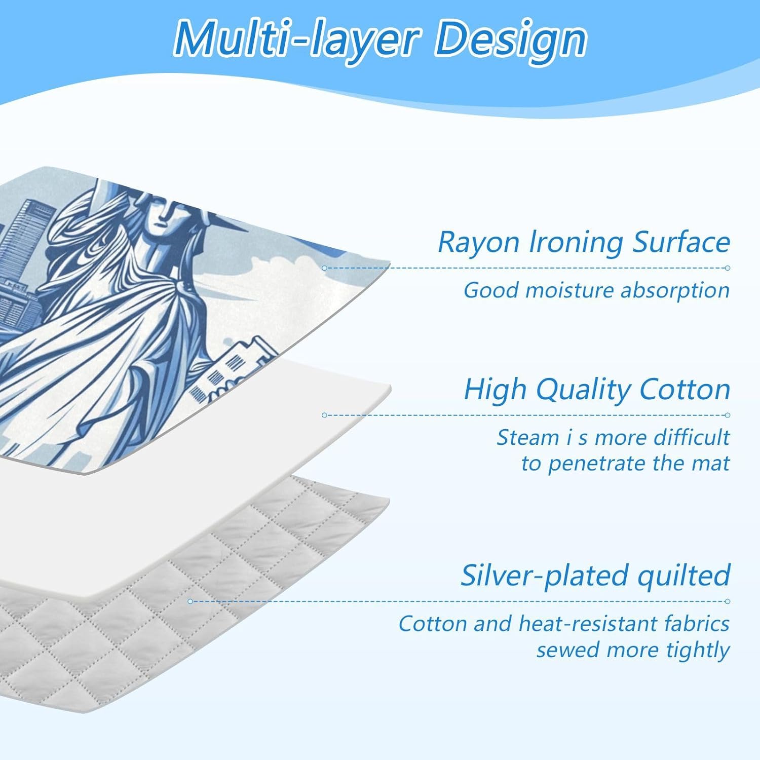 Ironing Mat Portable Ironing Pad Ironing Blanket for Table Top Heat Resistance Double-Side Using Travel Large 47.2 x 27.6 Inch Foldable Lightweight Statue Of Liberty New York Skyline Waves Bl