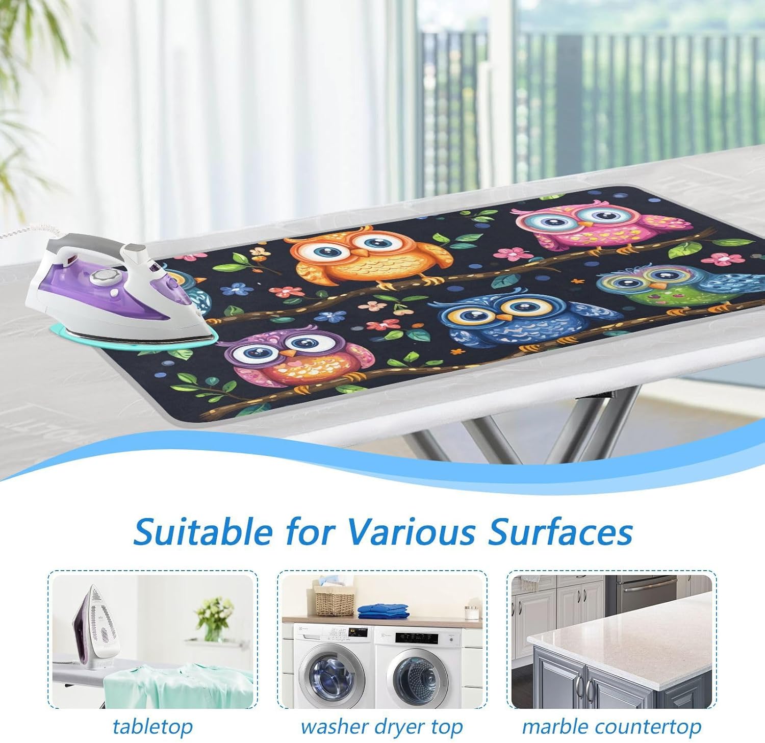 Ironing Mat Portable Ironing Pad Ironing Blanket for Table Top Heat Resistance Double-Side Using Travel Large 47.2 x 27.6 Inch Foldable Lightweight Vibrant Owls Branches Flowers Spring