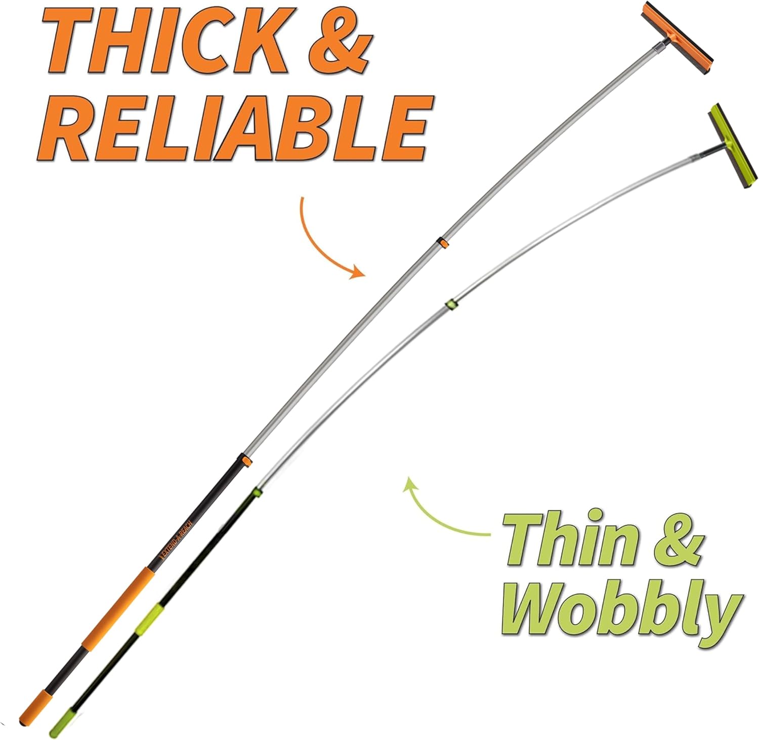 • THE ONE EXTENSION POLE THAT WON’T BREAK- Made of meticulously crafted, extra-thick aluminum, this extension pole is stiffer, tougher, and stronger. While other extendable window squeegees can get wobbly and fragile when fully extended, the EXTEND-A-REACH telescopic pole will always perform solidly. The professional window squeegee pole also features quick-release thumb lever clasps for easy extension control and non-slip hand grips to ensure maximal stability and reliable grip.