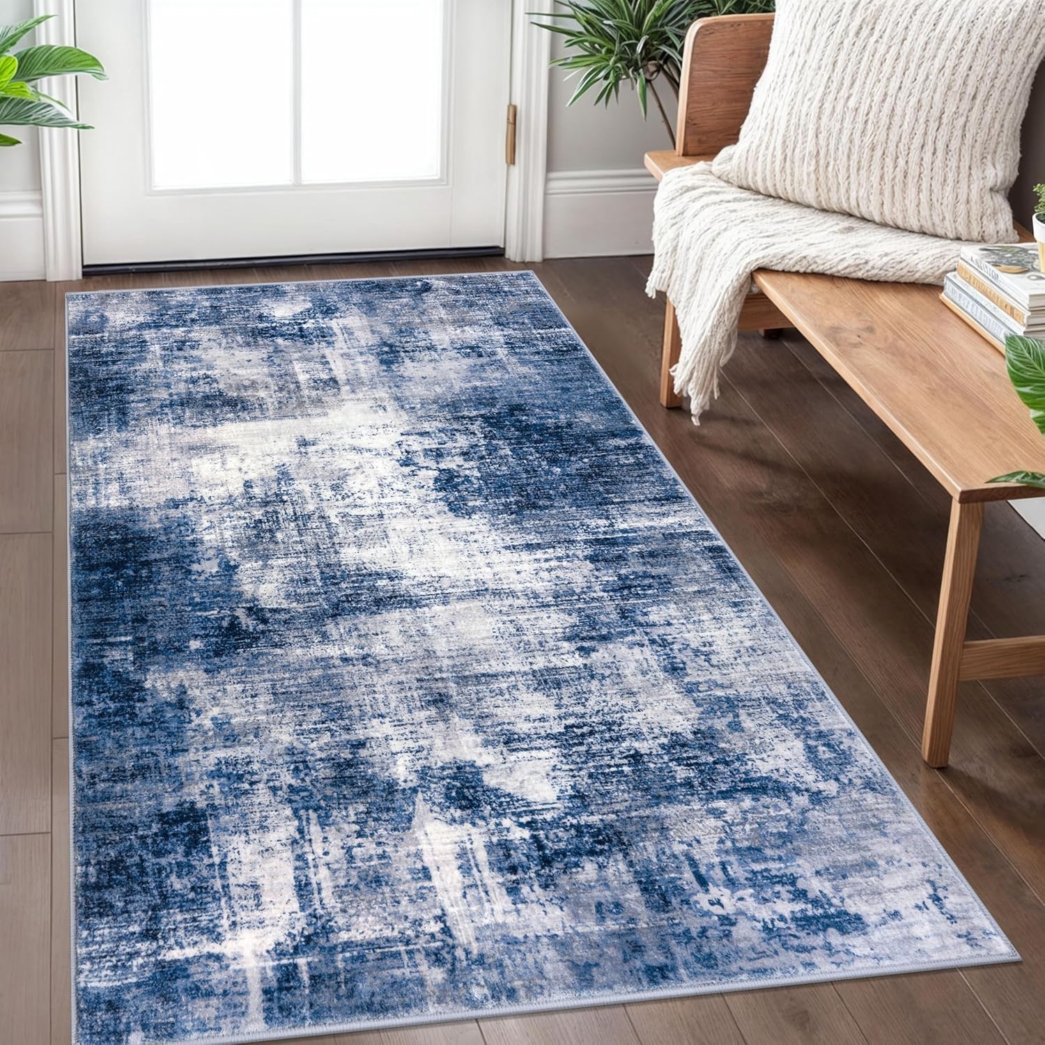 - Modern Abstract Printed Design: Transform your home with the modern abstract rug, a perfect blend of art and functionality. Printed with a modern abstract pattern, Its dynamic splashes of navy blue, gray and white hues add a vibrant touch to any room