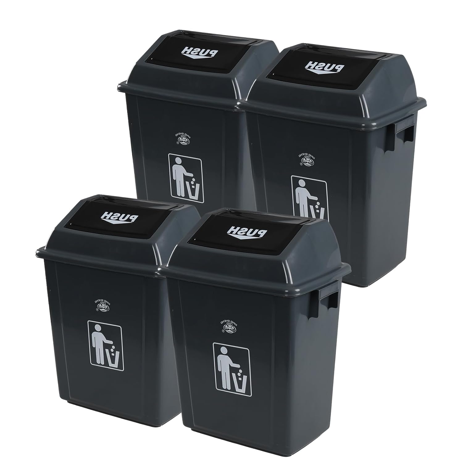 Readsky 6 Gallon Plastic Garbage Can Swing Lid, Trash Can Swing-Top, Swing Garbage Bin, 4 Packs, Gray