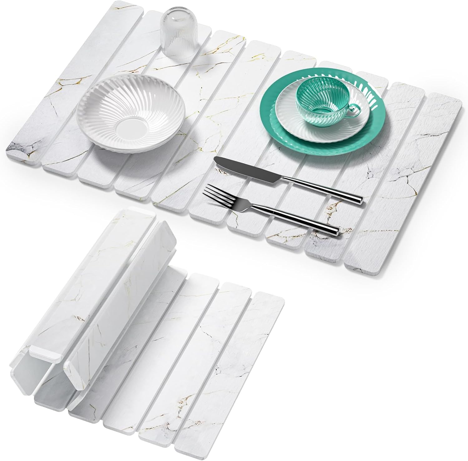 Stone Drying Mat for Kitchen Counter - 24x16 Inches Foldable Quick-Dry, Stone Dish Drying Mat Suitable for Kitchen Countertops | Environmentally Friendly A gift for Mom.
