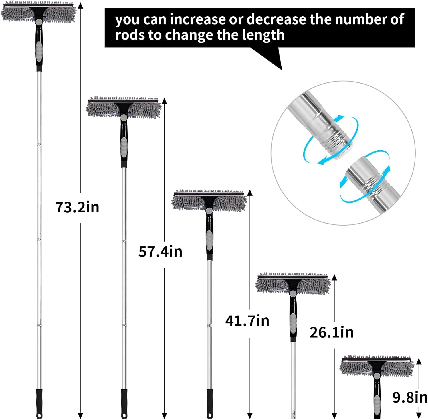 - THE PACKAGE INCLUDES:You will receive a squeegee blade, two chenille scrubbers, two microfibre scrubbers and four spliceable poles.The chenille scrubbers and microfiber scrubbers can be used again in place of each other after you use them for cleaning.