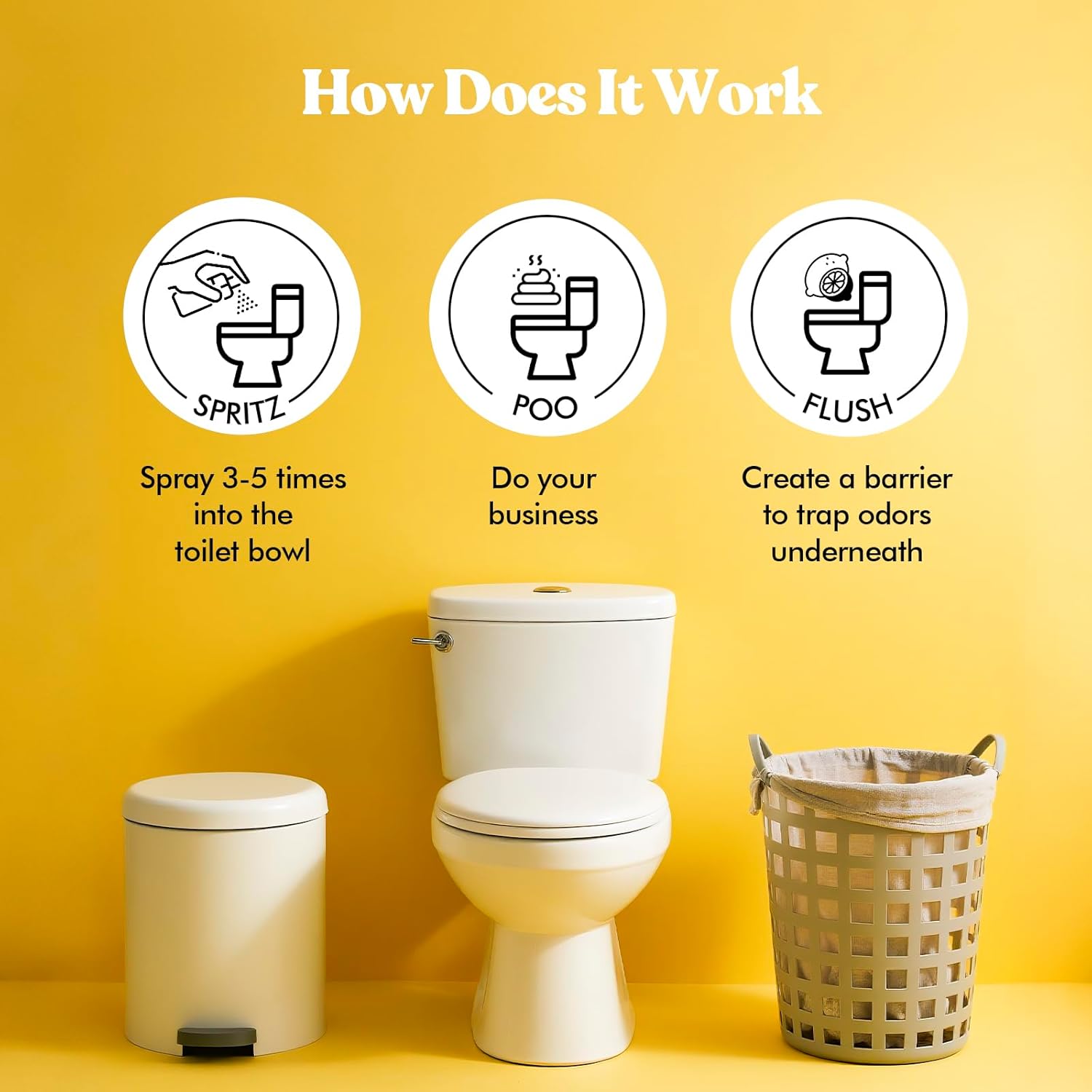 - ELIMINATE ODORS INSTANTLY: This travel-sized bottle keeps your bathroom smelling clean and fresh. It traps bathroom odors at the source instantly. Just spritz 2-4 sprays onto the water surface before use to stop odors before they starts