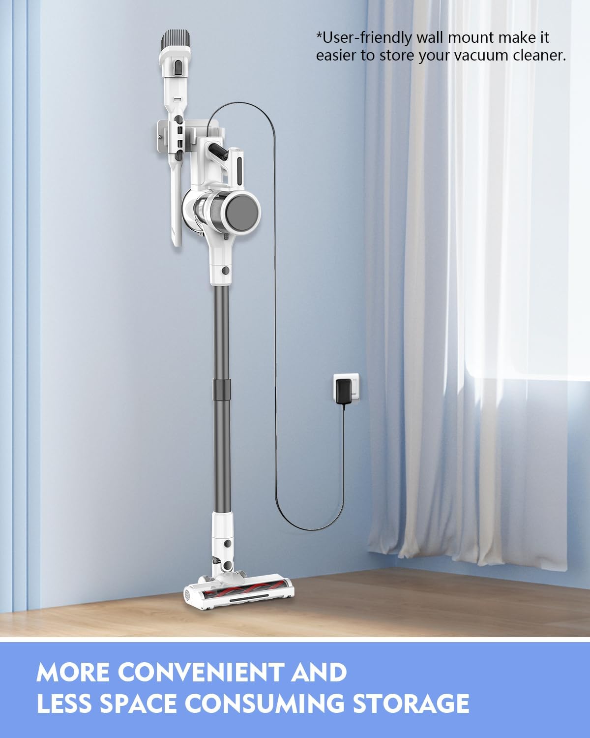 Cordless Vacuums, 80,000PRM Powerful Motor Vacuum Cleaner and 2200mAH Rechargeable Battery up to 35 Mins Worktime, 2 Adjustable Modes, Detachable Parts, Wireless Stick Vacuum (True White)