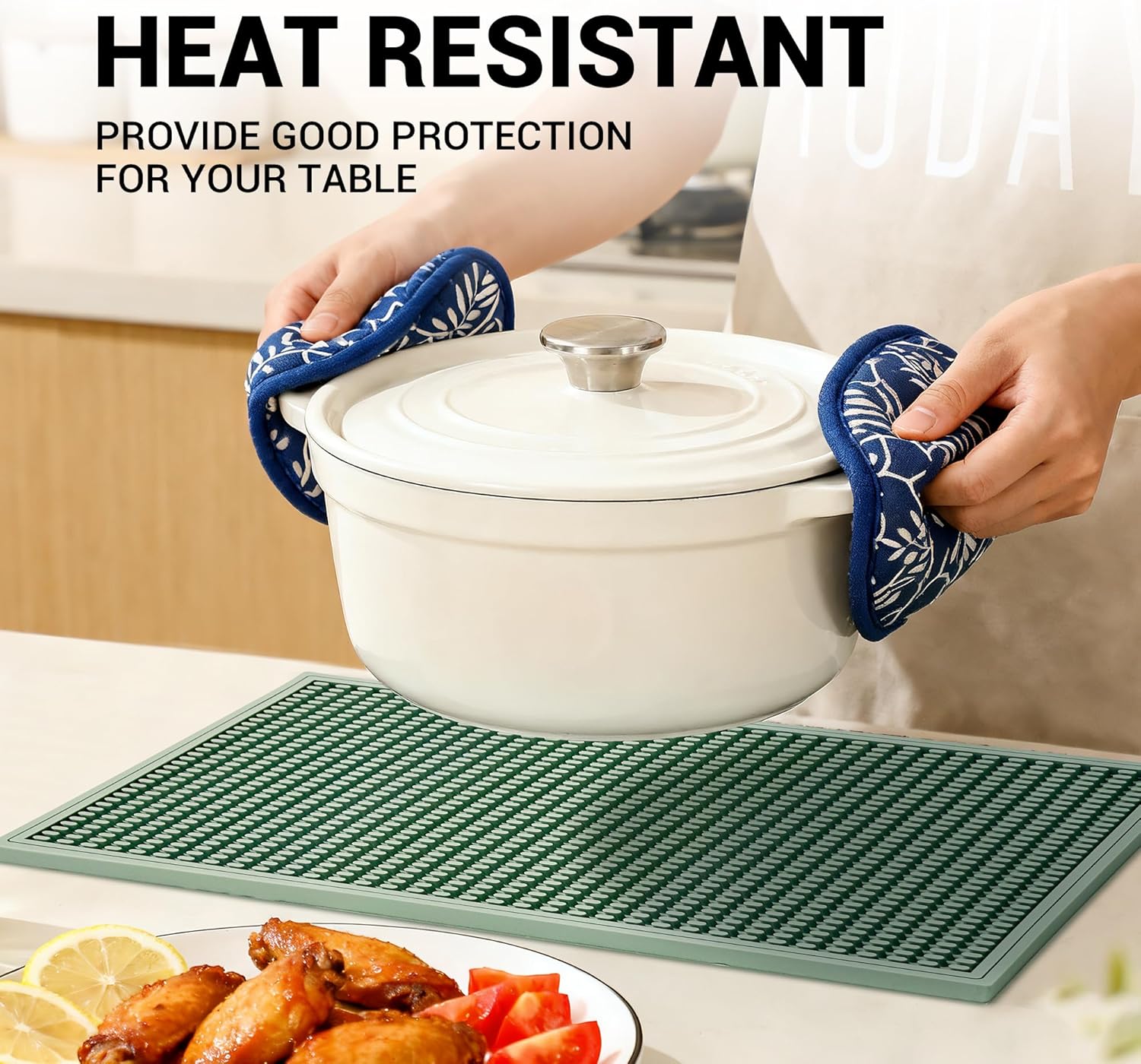 Dish Drying mat - 18" x 12" Green Silicone Drying mat, Kitchen Counter Dish Drying mats,Rubber Dish Drying mat, Applies to bar mat、Coffee mat