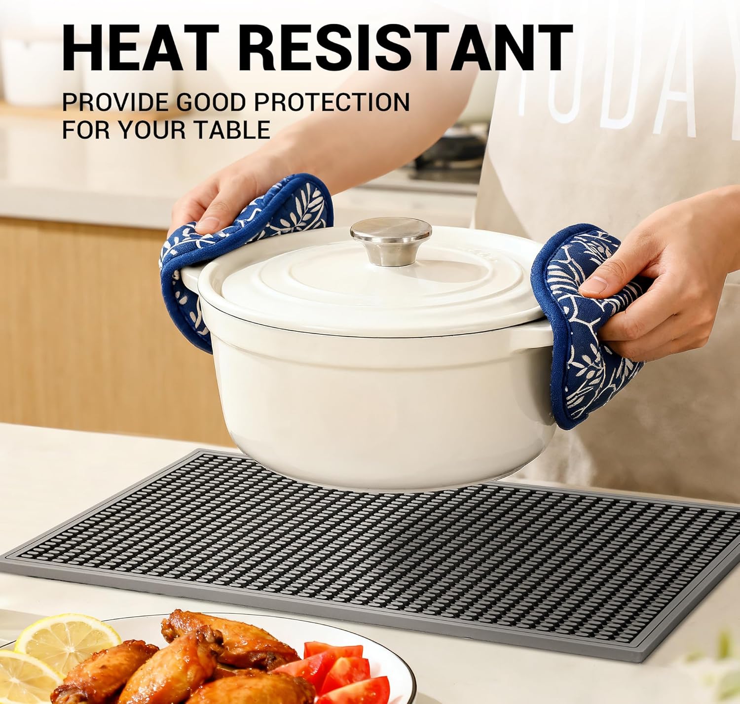 - Superior Drainage & Ventilation: Engineered with deep grooves and elevated ridges, this dish drying mats for kitchen counter promotes rapid airflow and prevents water pooling. Spills stay contained within the edges, keeping countertops dry and tidy. Say goodbye to soggy dish mat drying kitchen mat messes and hello to faster drying times!
