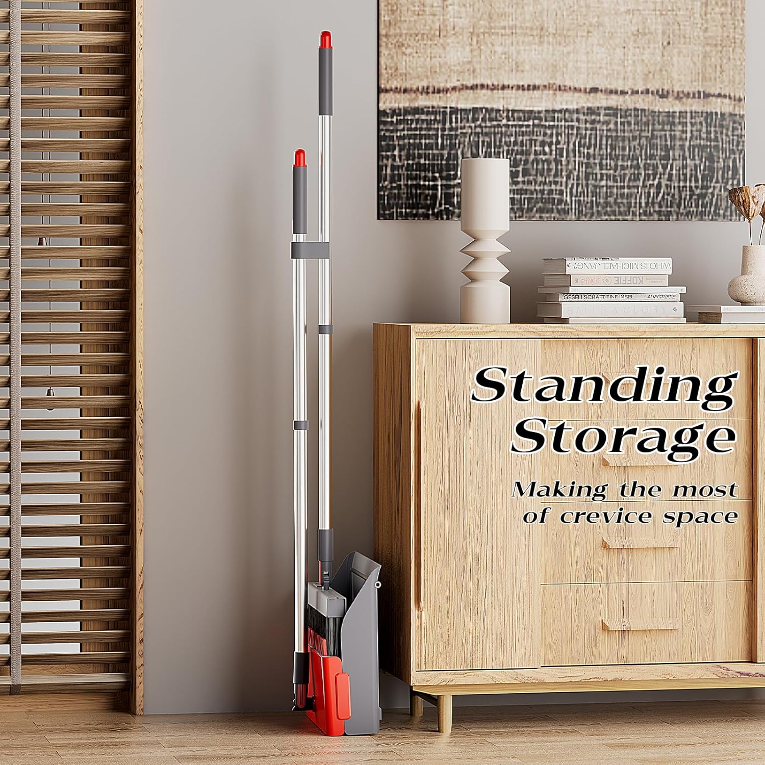 • ADJUSTABLE HANDLE: The dustpan's long handle extends up to 50 inches, which not only allows you to stand up straight and sweep comfortably, never having to bend over to dispose of waste again, but also sweeps dust from high or deep corners. DIY height, just remove the middle aluminum rod.Adjustable handle conforms to the height of adults and children.