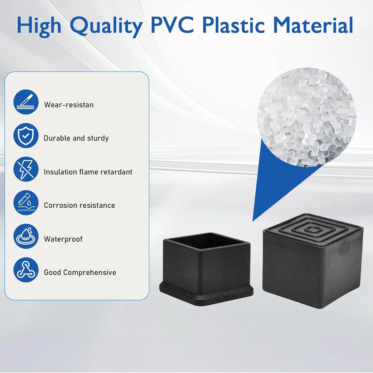 - Dimension and Quantity: 32 black square chair leg floor protectors, suitable for 0.62"x0.62"(16x16 mm) OD square chair legs; We offer different size options,including 5/8" - 4" square chair feet, allowing you to find the perfect fit for your specific needs (Please confirm that you are measuring the outside, not the hole)