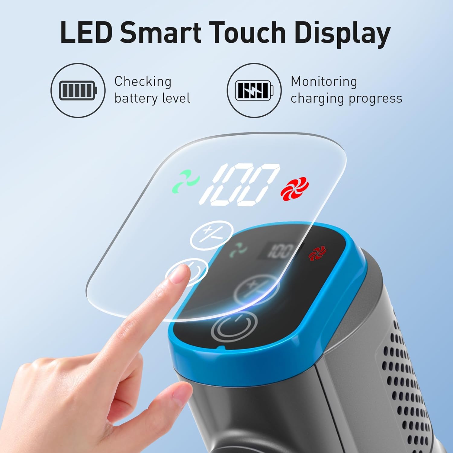 - Detachable 6Γ2200mAh Battery (45mins Runtime) β A single charge powers 45 mins of cleaning in Eco Mode (enough for 1500 sq.ft homes) or 25 mins in Max Mode for tough spots. The battery detaches easily: charge it separately while using a spare (not included) β no more waiting for charging to finish cleaning. Pro Tip: Fully charge the battery before first use for longer lifespan!