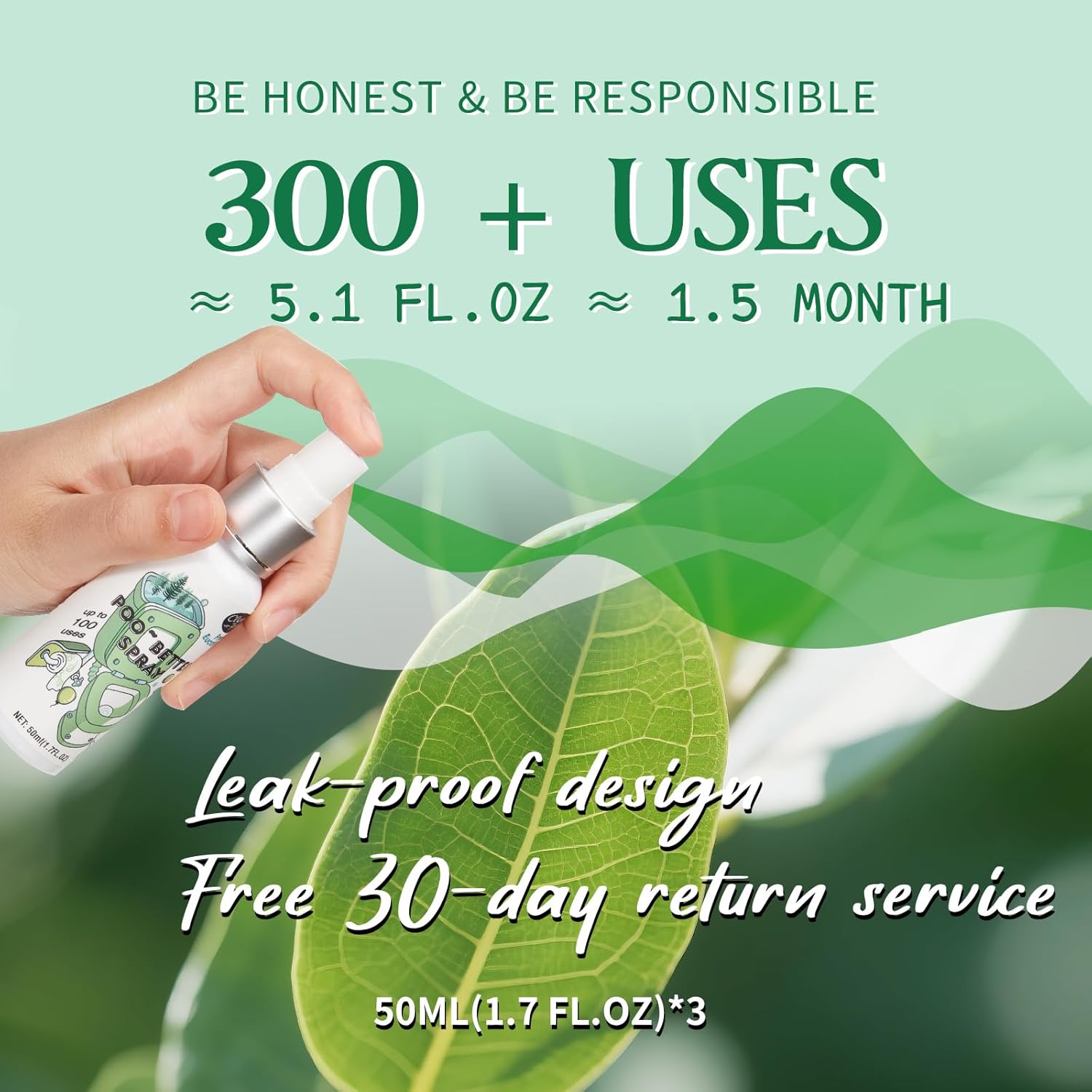 - ELIMINATE ODORS: This travel - sized bottle leaves your bathroom smelling clean and fresh. Just spritz 2 - 4 sprays in the toilet before use, lock down unpleasant odors below the water, effectively preventing odors before they begin