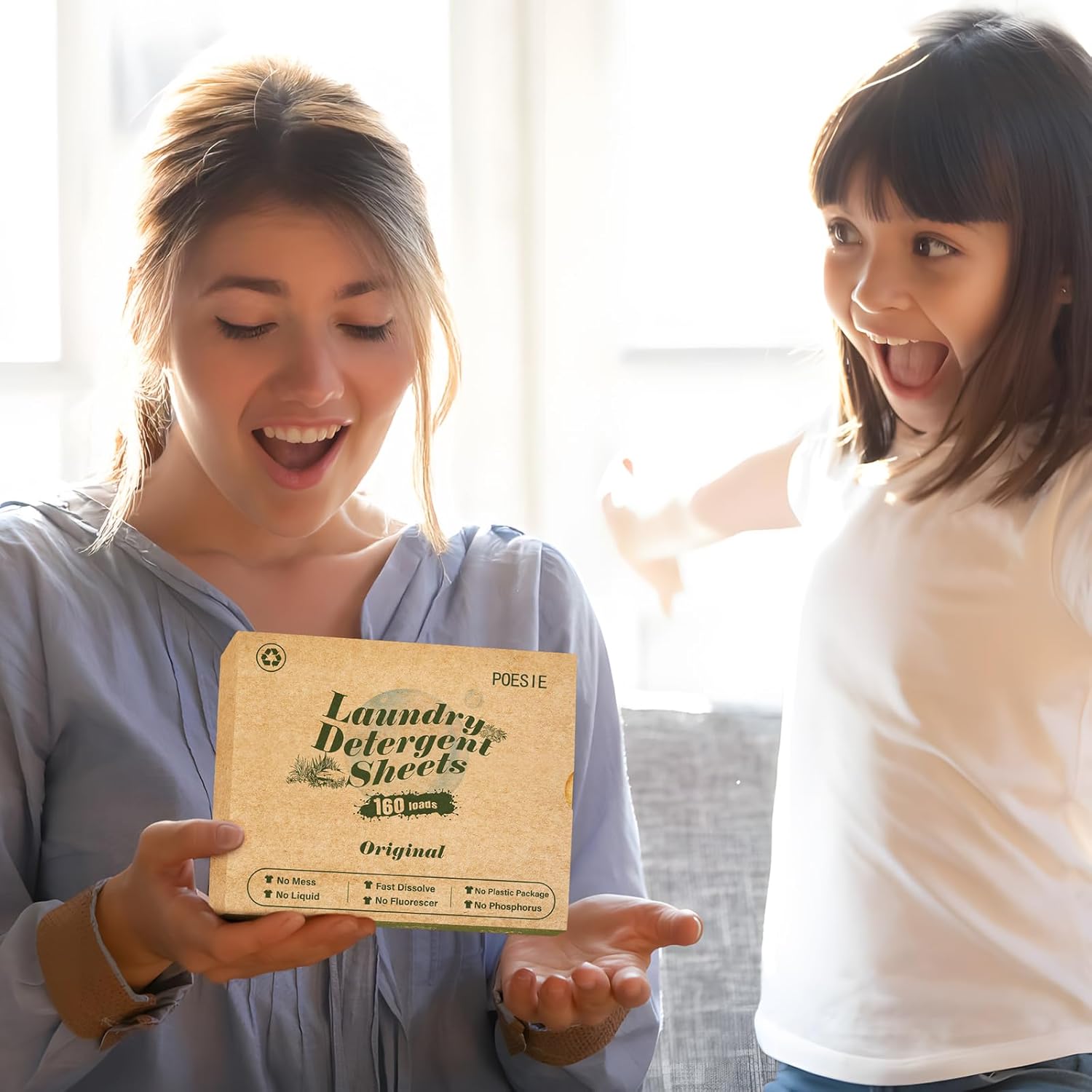 Poesie Laundry Detergent Sheets Original(Rainy Glass) Scent 160 Count Camping Hiking RV Trip Liquidless Clothes Laundry Detergent Strips for Travel Hotel Sink Dorm Home Outdoor