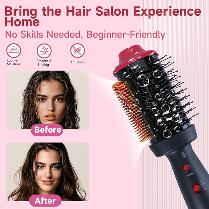 - Heated Comb Pro: Tame Roots Like a Stylist! Unique heated metal comb teeth (120°F) detangle roots while drying - zero pulling! Paired with nylon tufted bristles for mid-lengths-to-ends smoothing. Salon-perfect volume in 10 mins.