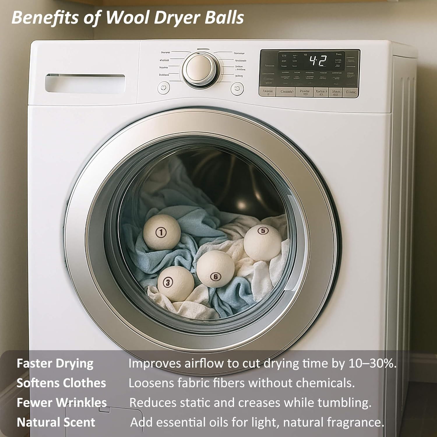 - π Eco-Friendly & Chemical-Free β Made from 100% natural New Zealand wool, our dryer balls replace toxic dryer sheets and liquid softeners. Safe for sensitive skin, babies, and petsβno synthetic fillers or harsh chemicals!