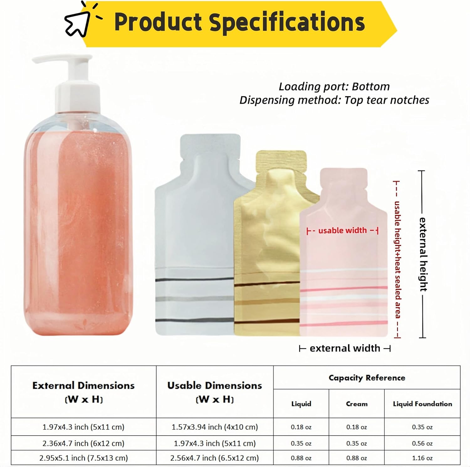 100 Pack 2.36x4.7 inch Heat Seal Sample Mylar Packet for Portable Travel Toiletries Empty Disposable Liquid Shampoo Pouch Single Serving Coffee Powder Condiments Food Storage (Gold)