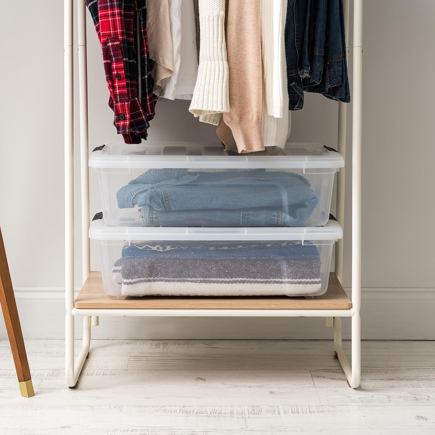 IRIS USA 27 Qt Stackable Plastic Storage Bins with Lids, 2 Pack - BPA-Free, Made in USA - Discreet Organizing Solution, Latches, Durable Nestable Containers, Secure Pull Handle - Clear