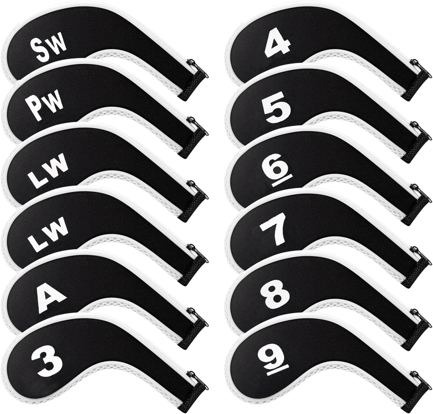 - 🏌♂【Package Content】Golf ball iron head cover. Fits all brands title list, Callaway, Ping, TaylorMade, Cobra etc. Please make sure your clubs are the right size before purchase.12pcs/set, including 3,4,5,6,7,8,9,A,PW,SW,LW,LW.