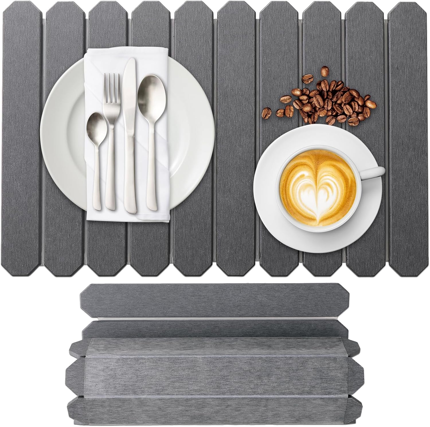 - Collapsible Design & Easy to Storage - This stone dish drying mats is designed with 24x16 inches to fit for most of kitchen counter, it is larger than the ordinary drying mat to put more dishes. You can fold-up this drying pad and put it into the kitchen cabinets when you donβt need to use it