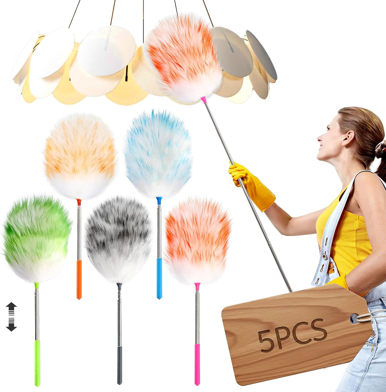 5PCS Extendable Lambswool Duster with 35-55 Inch Adjustable Aluminum Handle,Feather Duster Static Electricity Dust Adsorption, Reusable Cleaning Tool for Home, Car, Office, Ceiling, Furniture
