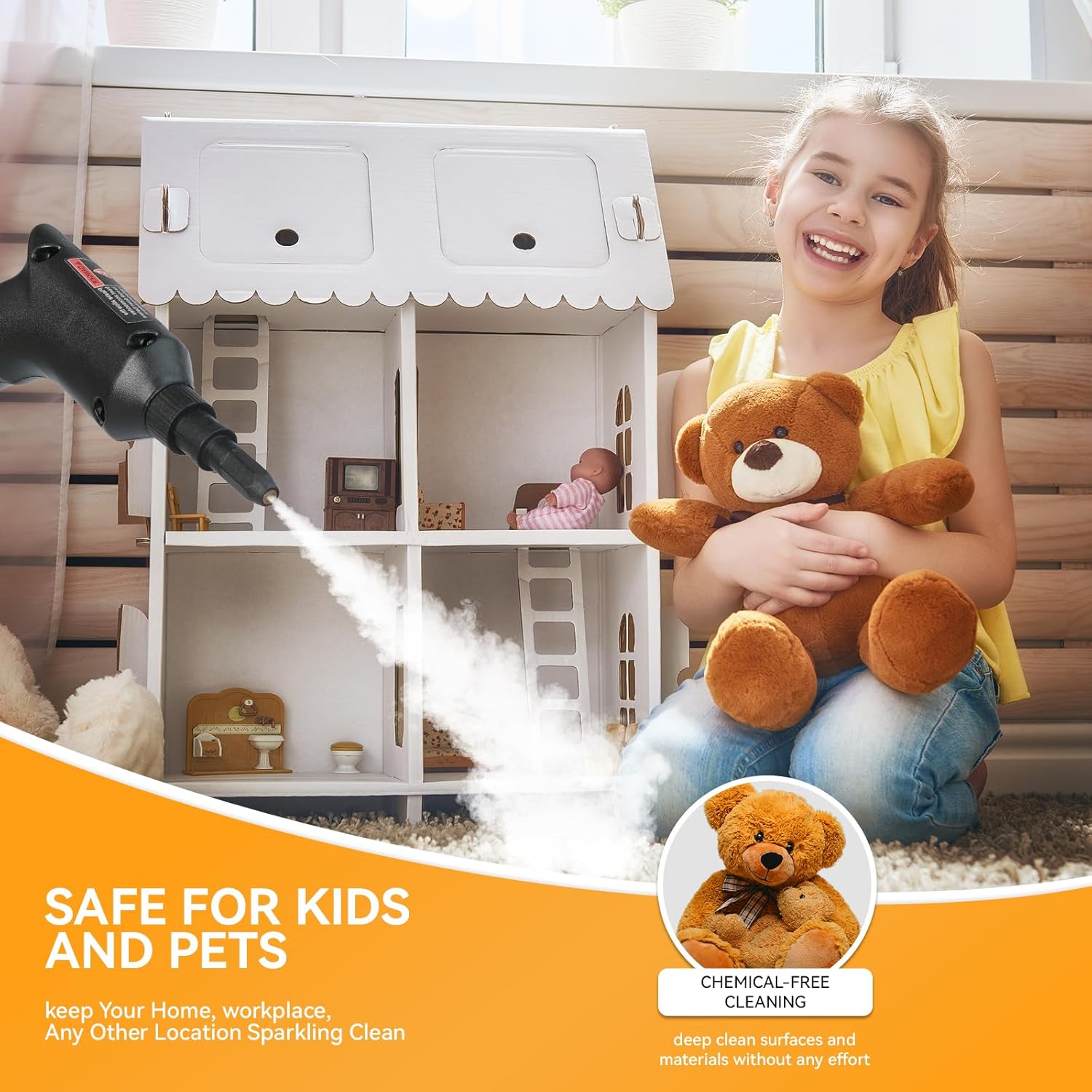 - High Temperature & High pressure Steam Cleaner: Powered by 1500W motor,1-6 adjustable pressure gears, this steam cleaner for home delivers up to 3 bar of pressurized steam, reaching 221Β°F (100Β°C) in just 15 seconds, handheld steam cleaner comes with a 1.5L water tank for extended use,supports up to 1 hour of continuous cleaning, reducing frequent refills.