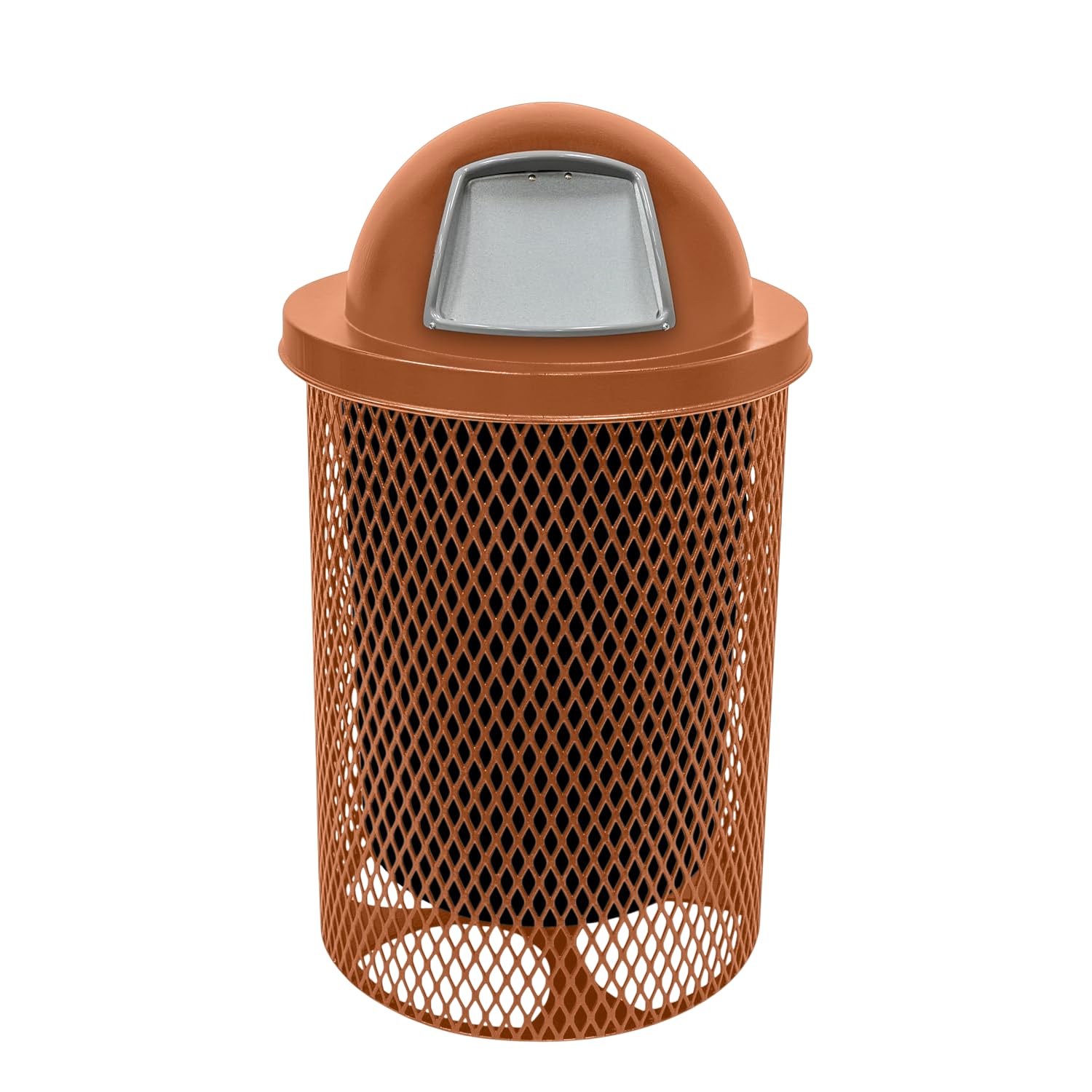 COATEDOUTDOORFURNITURE 32-Gallon Heavy-Duty Expanded Metal Round Trash Receptacle, Commercial Outdoor Waste Bin with Liner & Black Dome Lid – Made in America (Textured Copper)