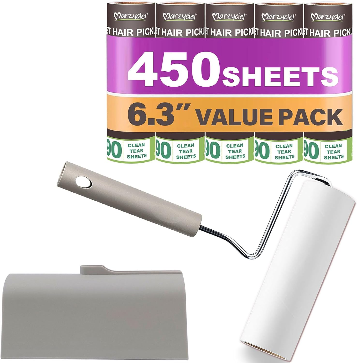 - Large Surface Area, High Sheet Count: Includes one cotton roller and 5 packs of 90 sheets each, totaling 450 sheets. With a width of 6.3 inches (16 cm), this eco-friendly and odorless extra large lint roller is perfect for clothing, sofas, carpets, pet beds, floors, and other furniture.