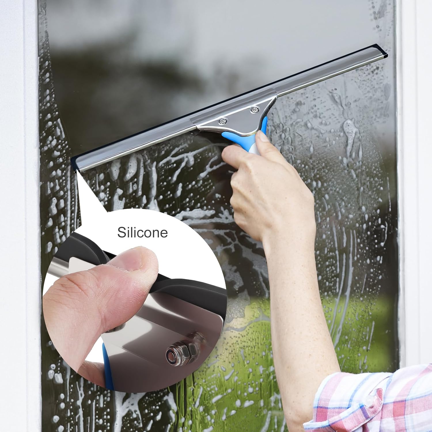• Professional Cleaning Tools: The squeegee adopt stainless steel design, silicone squeegee blade, rubber non-slip grip, super microfiber scrubber, all with professional-grade to ensure efficient cleaning experience.