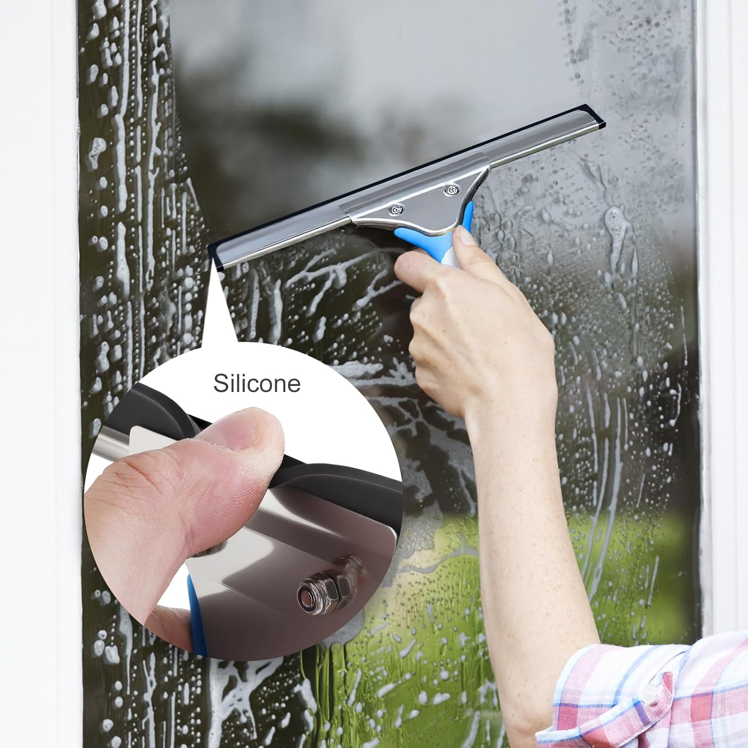 - Streak-free & Squeak-free Results: This window cleaner tool is fitted with superior silicone blade, soft and durable, allowing for streak-free result and squeak-free water control without scratching your windows. It includes a stainless steel S-Channel and quick-release button for easy silicone blade changes.