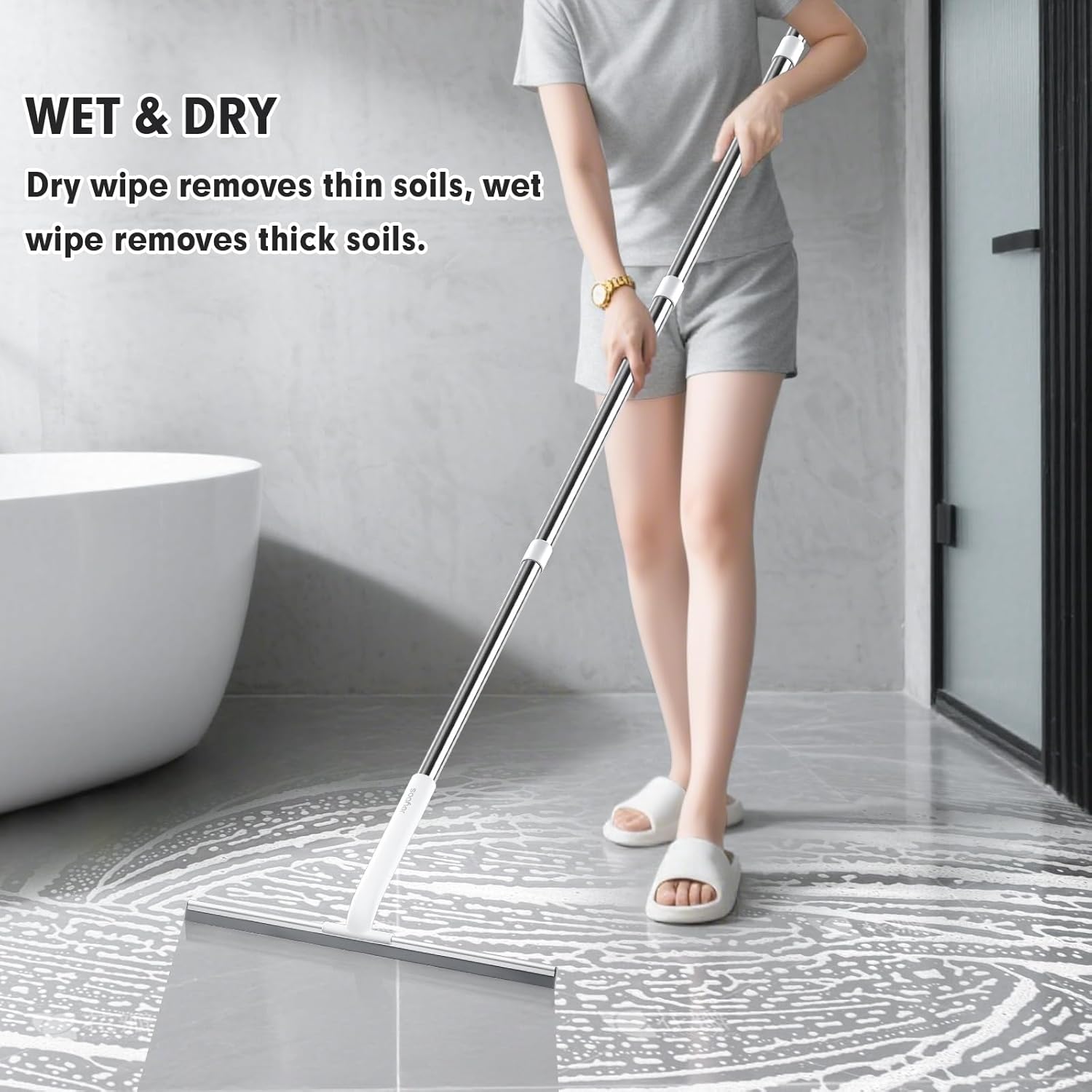 • Versatile Squeegee Broom for Floor: Featuring a wide 15.7” head, this squeegee broom for floor is perfect for a range of cleaning tasks. Whether you’re dealing with concrete floors, tile floors, shower areas, decks, or commercial spaces like garages, hospitals, hotels, and pools, this floor squeegee handles it all with ease.