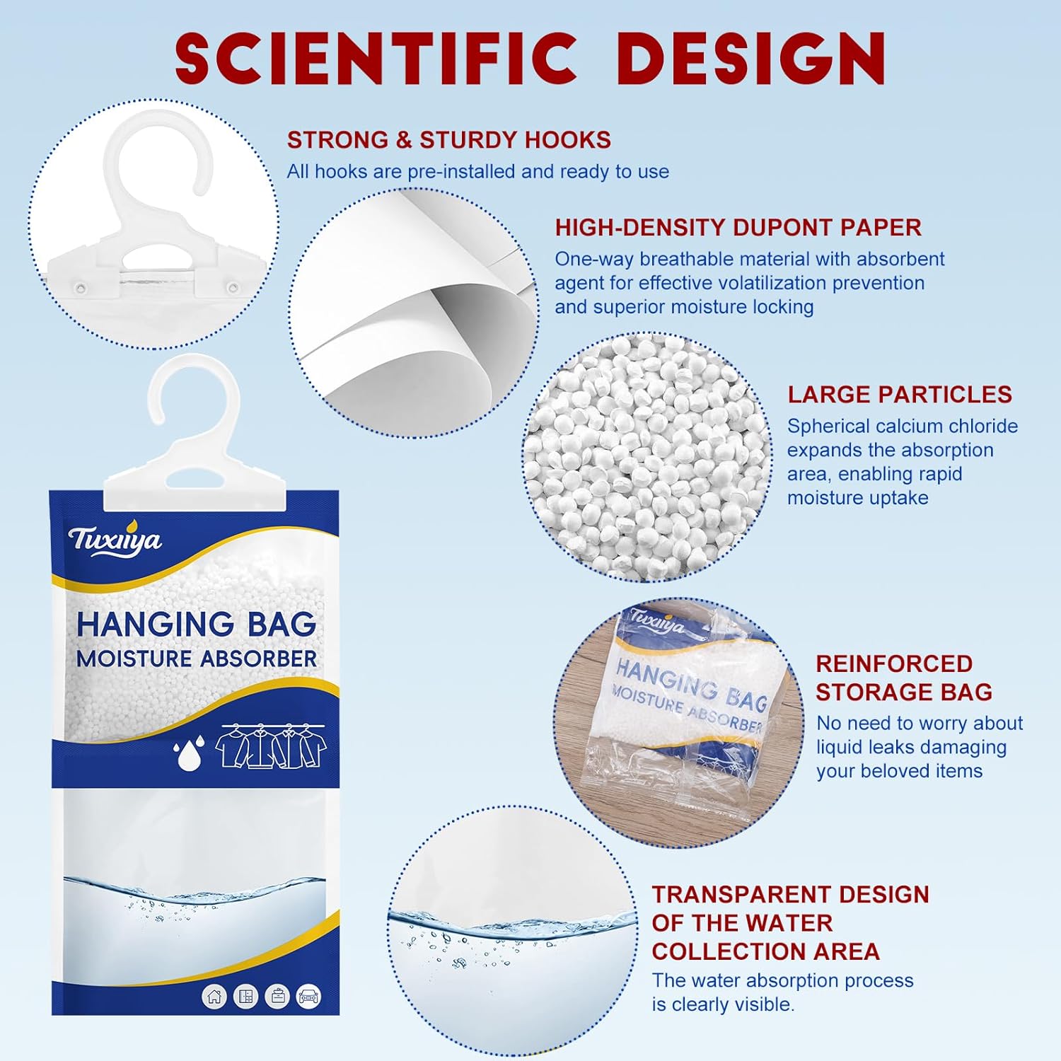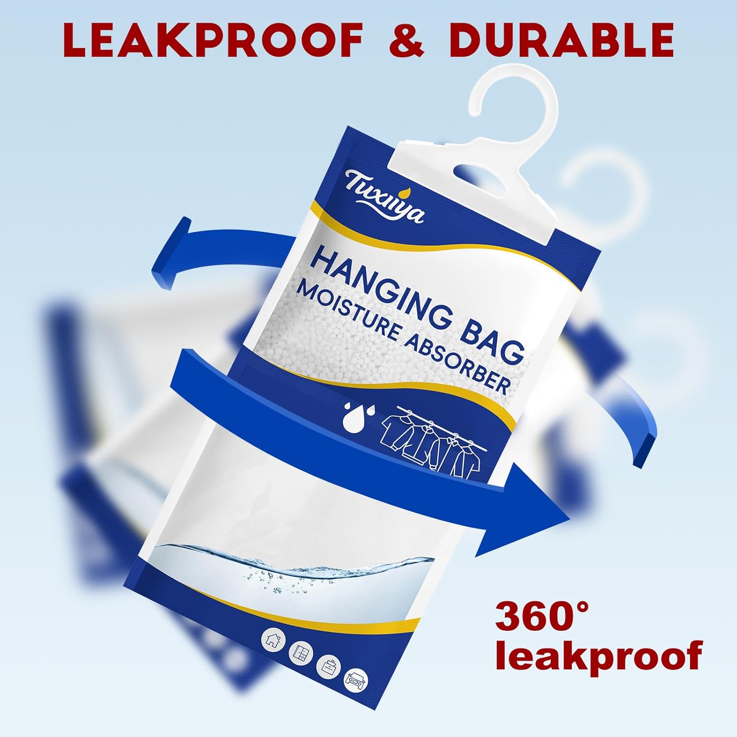 - 【Secure Leak-Proof Design】:This hanging closet dehumidifier bags features a secure construction with professional one-way permeable paper and a reinforced collection bag. This design effectively contains the absorbed liquid, ensuring there is no leakage or mess, and offers reliable protection for your items.