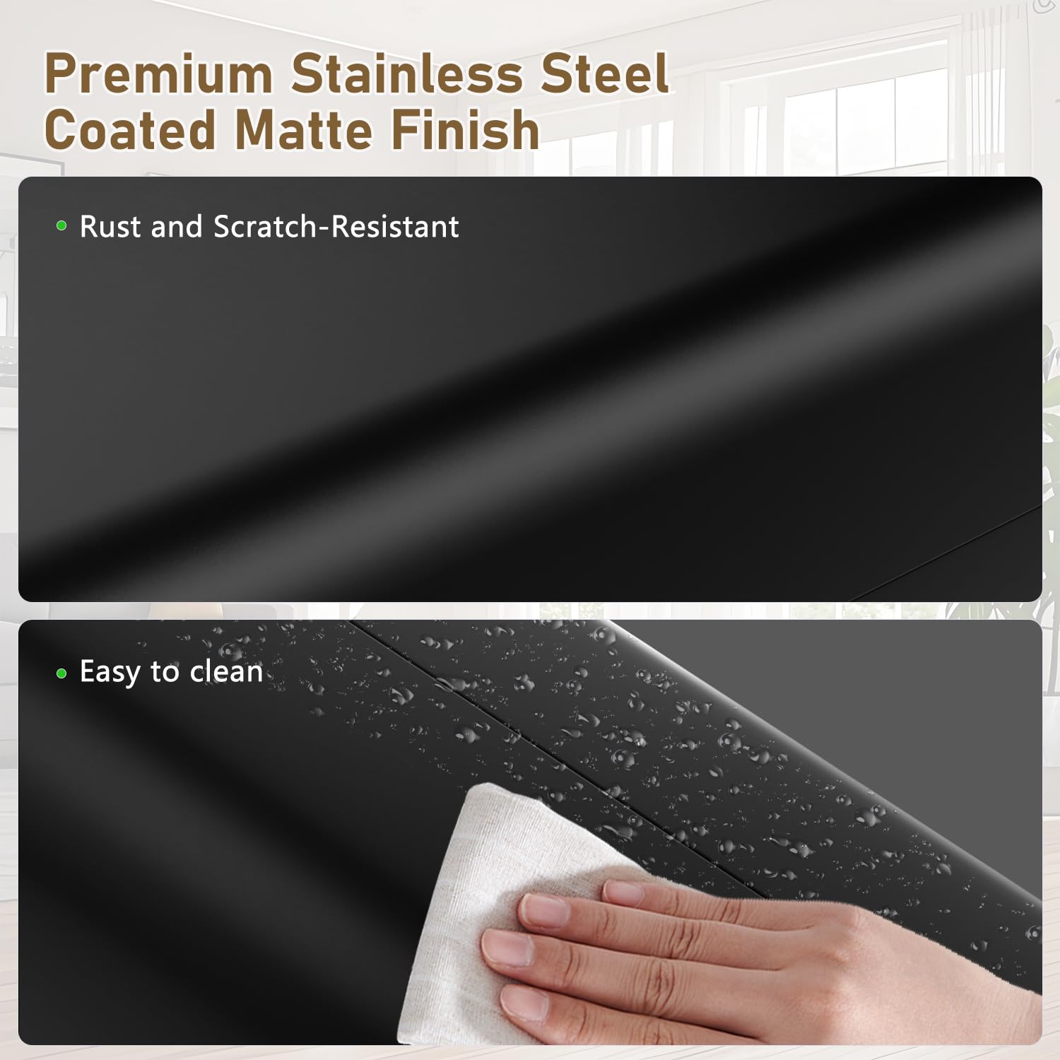 - ăEASY TO CLEANă Premium matte black coating resists fingerprints, scratches, and rustâjust wipe with a damp cloth for effortless, streak-free cleaning.