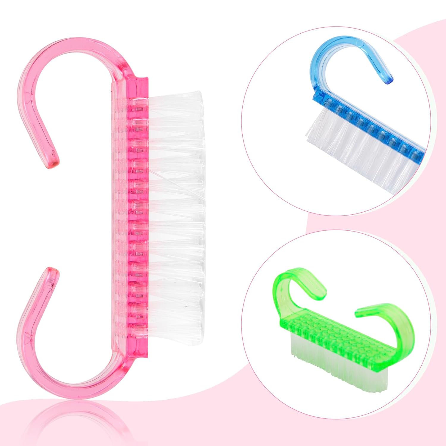 - Skin-Friendly Material – Made of sturdy plastic with flexible bristles that are neither too hard nor too soft, our handle grip nail brushes provide effective cleaning without scratching the skin, safe for adults and children.