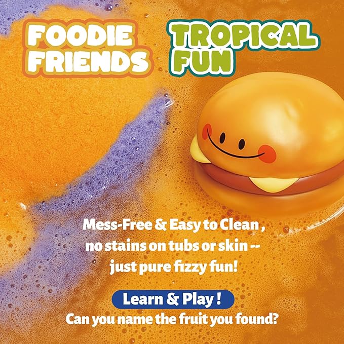 - Fizz, Bubbles & Magic: Watch them fizz and bloom into a rainbow of bubbles and soothing aromas. After 4–6 minutes, the hidden toy floats up—sparking joy, curiosity, and playful learning in every bath.