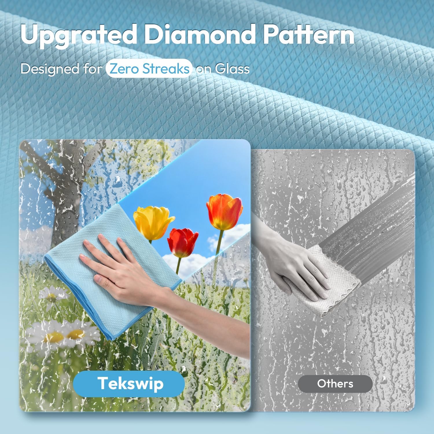 - [Unique Streak-Free Texture] The unique diamond pattern is expertly designed to wipe away messes without leaving streaks behind. It effortlessly absorbs water for a perfectly clear, making these microfiber cleaning cloths the ultimate choice for cleaning windows, mirrors, and any glass surface.