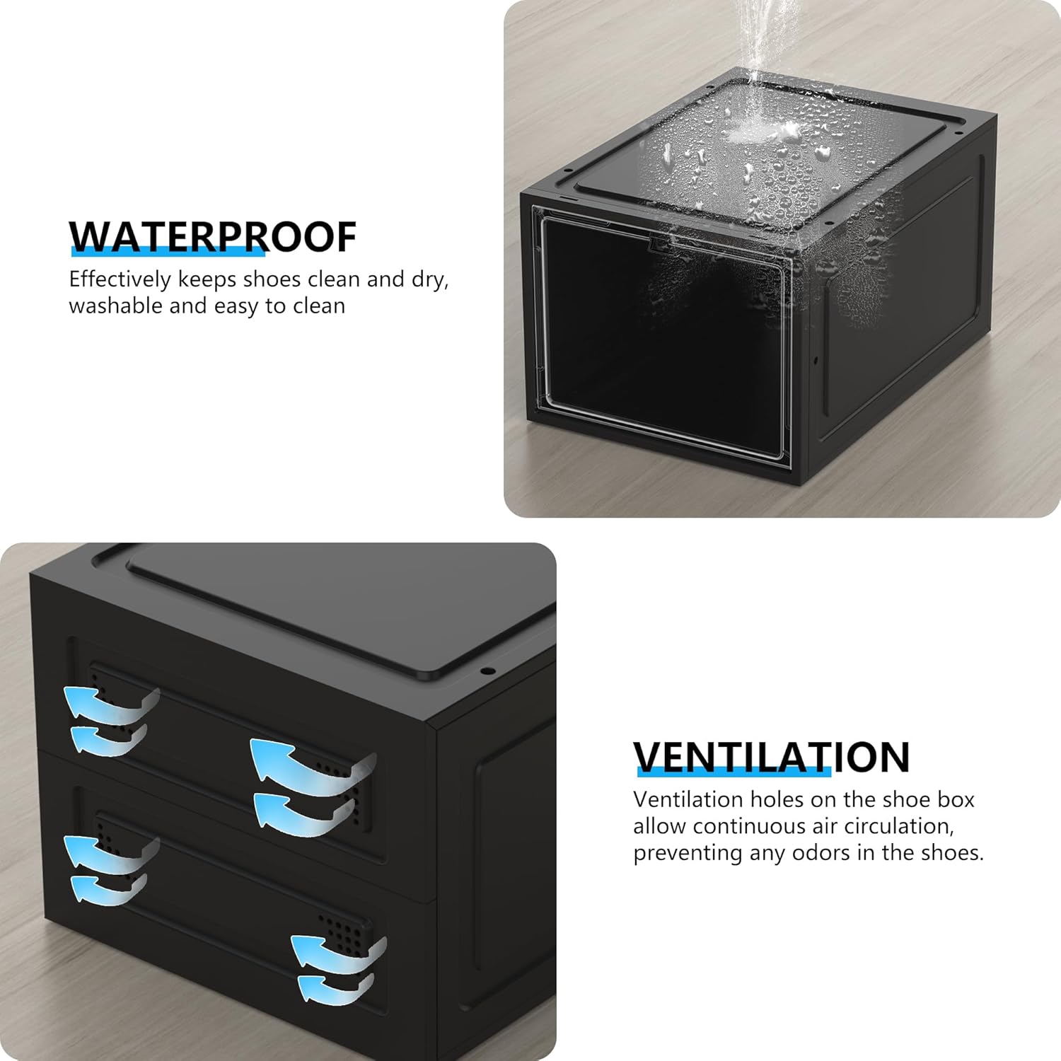 - Upgraded Hard Shoe Boxes:Say goodbye to soft plastic shoe boxes! Made of from sturdy hard plastic on all six sides, our shoe boxes boast exceptional durability and load-bearing capacity. Additionally, their transparent design ensures easy viewing of your shoes.