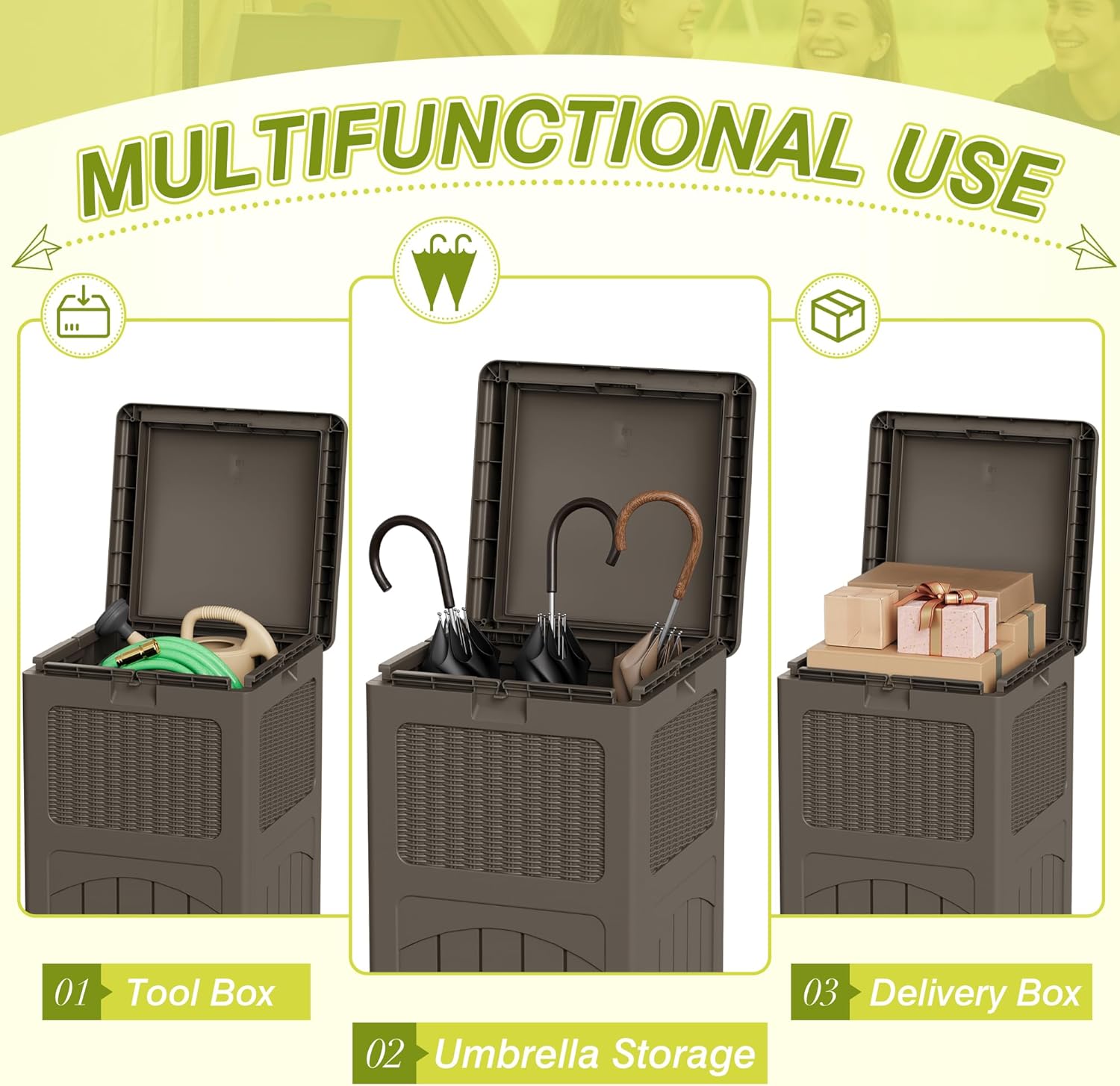 - Spacious & Versatile: With a 33-gallon capacity (fits standard 30-33 gal bags), this bin stores ample waste for patios, BBQs, or pool areas. Dimensions: 16.5”L x 15.7”W x 31.5”H – compact yet roomy!