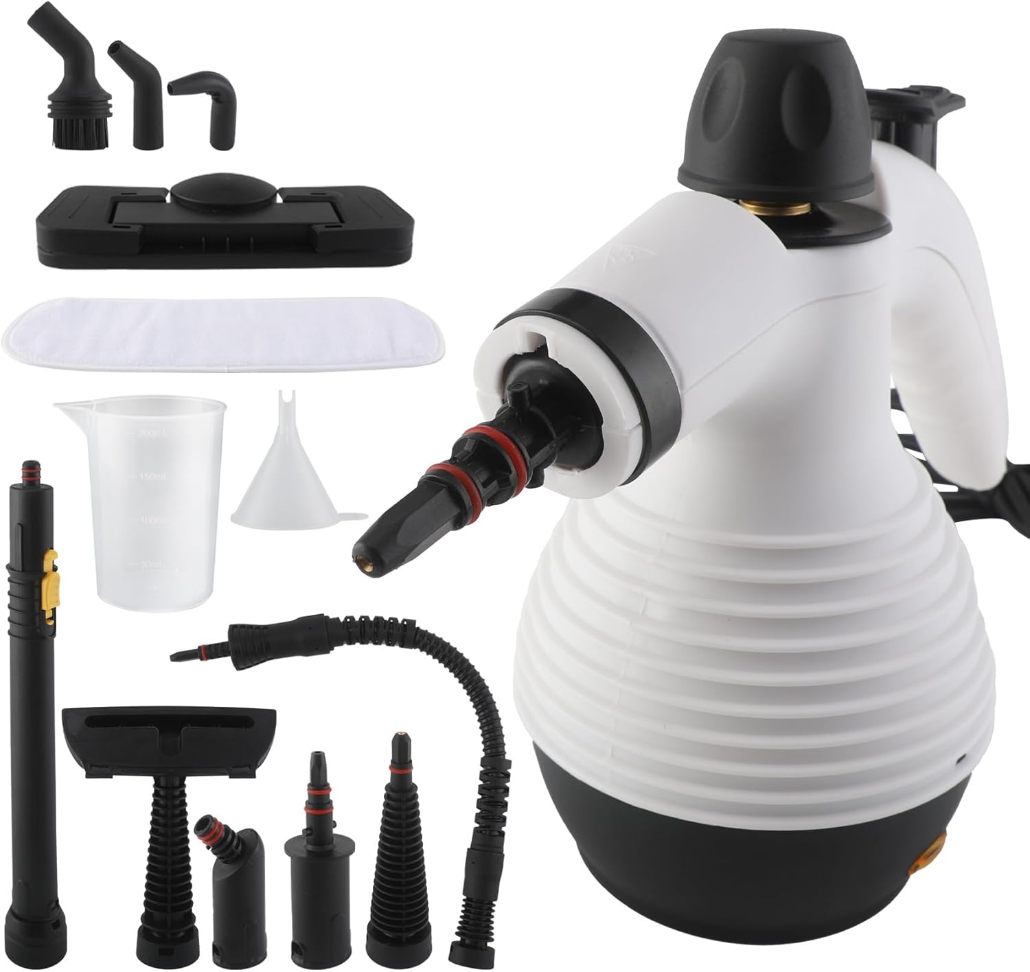 • 【18-Piece Steam Cleaner Set】Our household steam cleaners come with a comprehensive 18-piece accessory set, providing you with the flexibility to choose the right tools for cleaning hard-to-reach areas. Handheld Steam Cleaner can be used in different scenarios, for example kitchen, bedroom, living room, car leather goods, bathroom, clothing and so on. Whether it is stubborn grease or dust in the crevices, it can be swept away.