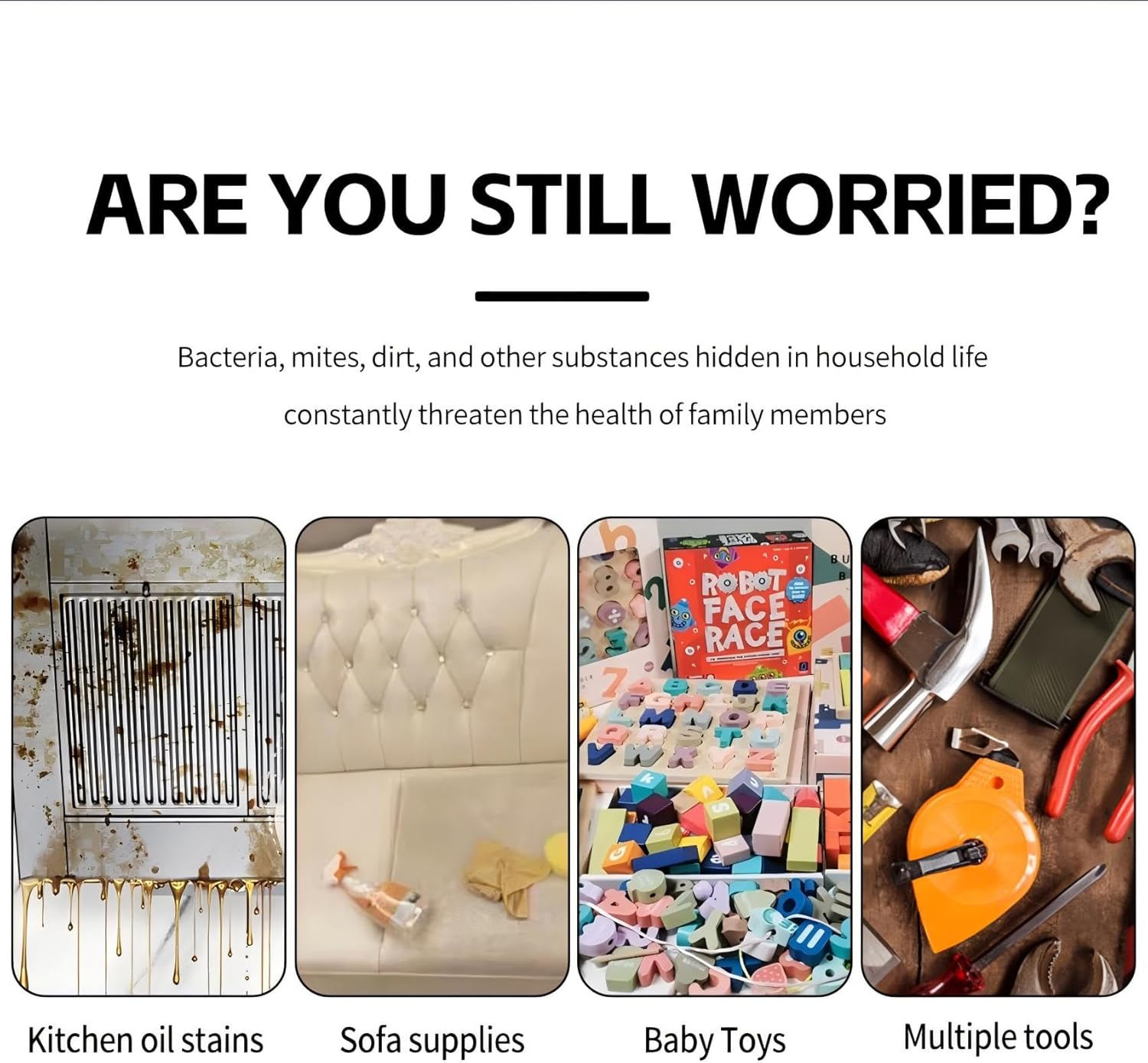 • 【CHEMICAL-FREE & 100% NATURE】Our handheld steam cleaner is free of any harsh chemicals, using only water to generate natural and powerful steam, ensuring a safe and healthy home environment for you and your family. This chemical-free cleaning solution is safe and reliable, perfect for households with children and pets, with no need to worry about harmful residues left on surfaces after cleaning