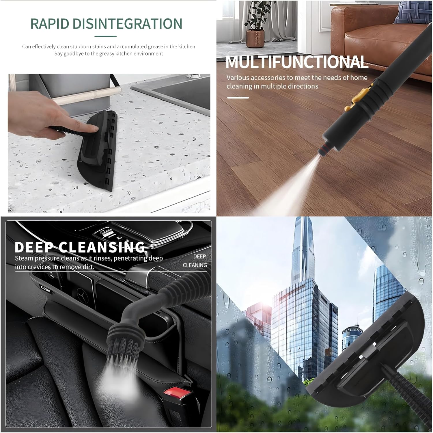 • 【𝗠𝗨𝗟𝗧𝗜-𝗦𝗖𝗘𝗡𝗘𝗦 & 𝗣𝗢𝗪𝗘𝗥𝗙𝗨𝗟 𝗦𝗧𝗘𝗔𝗠】This handheld steam cleaner is a true all-rounder! Handheld pressurized steam cleaner effectively tackles various corners around the house. From floors, cars, sofas - the steamer for cleaning making cleaning a breeze.