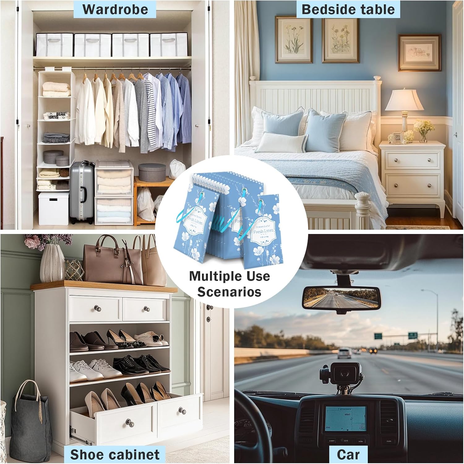 • Portable & Convenient: The compact design makes it easy to carry and place anywhere, each sachet has a rope, you can choose to place it directly on the cabinet, or you can hang it up.