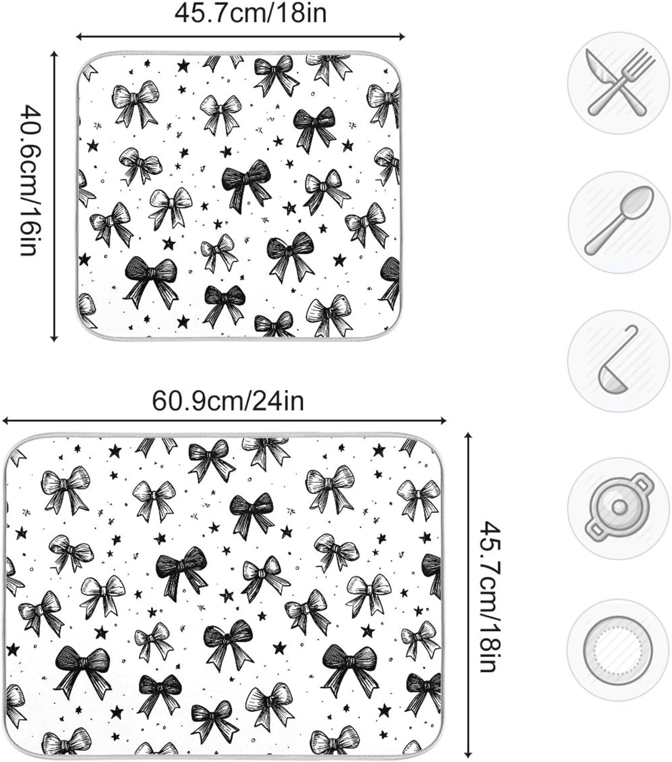 Black White Bowknot Dish Drying Mat for Kitchen Countertop 18x24 Rectangle Bow Large Drying Mat Reusable Quick Dry Dish Sink Absorbent Mats Dishwasher Easy Clean Decorative Home Decor Essentials