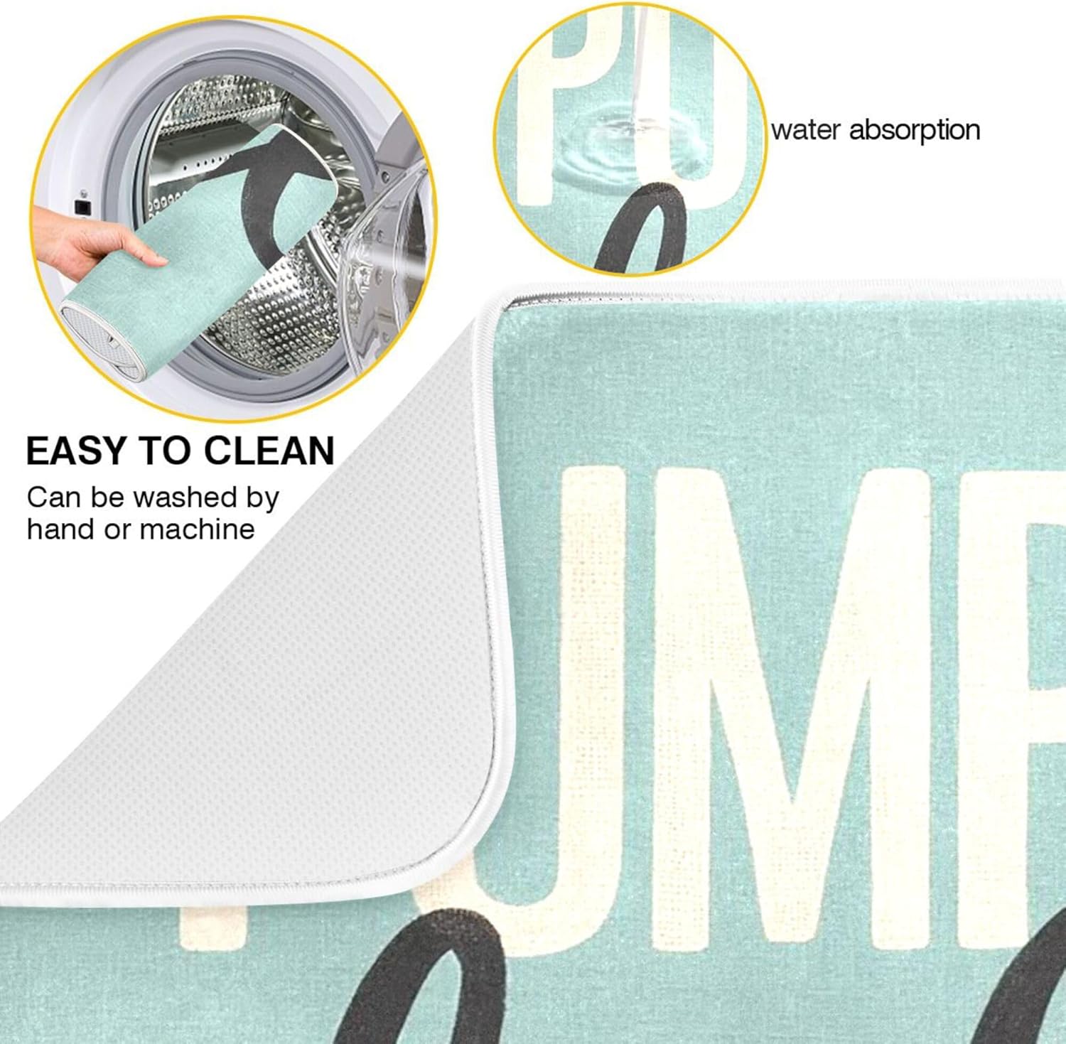 Hello Pumpkin Turquoise Fall Dish Drying Mat for Kitchen Countertop 16x18 Aqua Teal Autumn Small Drying Mat Reusable Quick Dry Dish Sink Mats Easy Clean Decorative Essentials