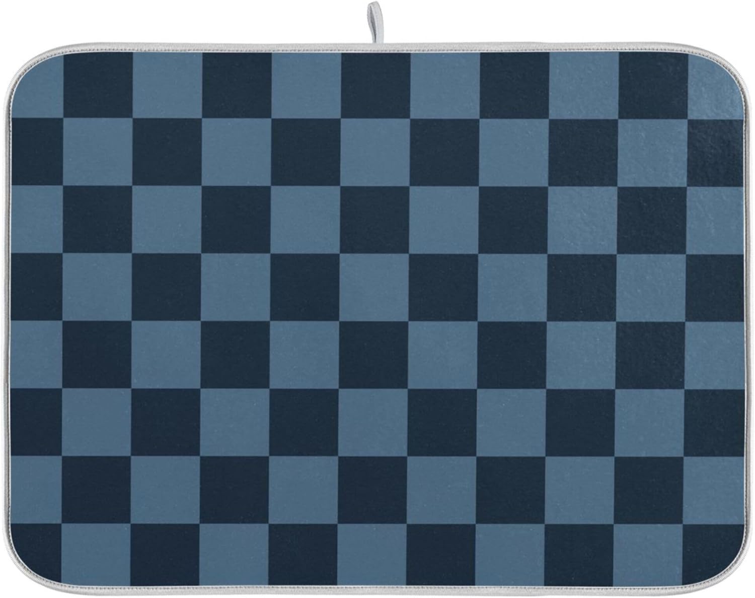 Buffalo Plaid Navy Blue Dish Drying Mat for Kitchen Countertop 18x24 Chessboard Rectangle Large Drying Mat Reusable Quick Dry Dish Sink Absorbent Mats Dishwasher Easy Clean Decorative Home Essentials