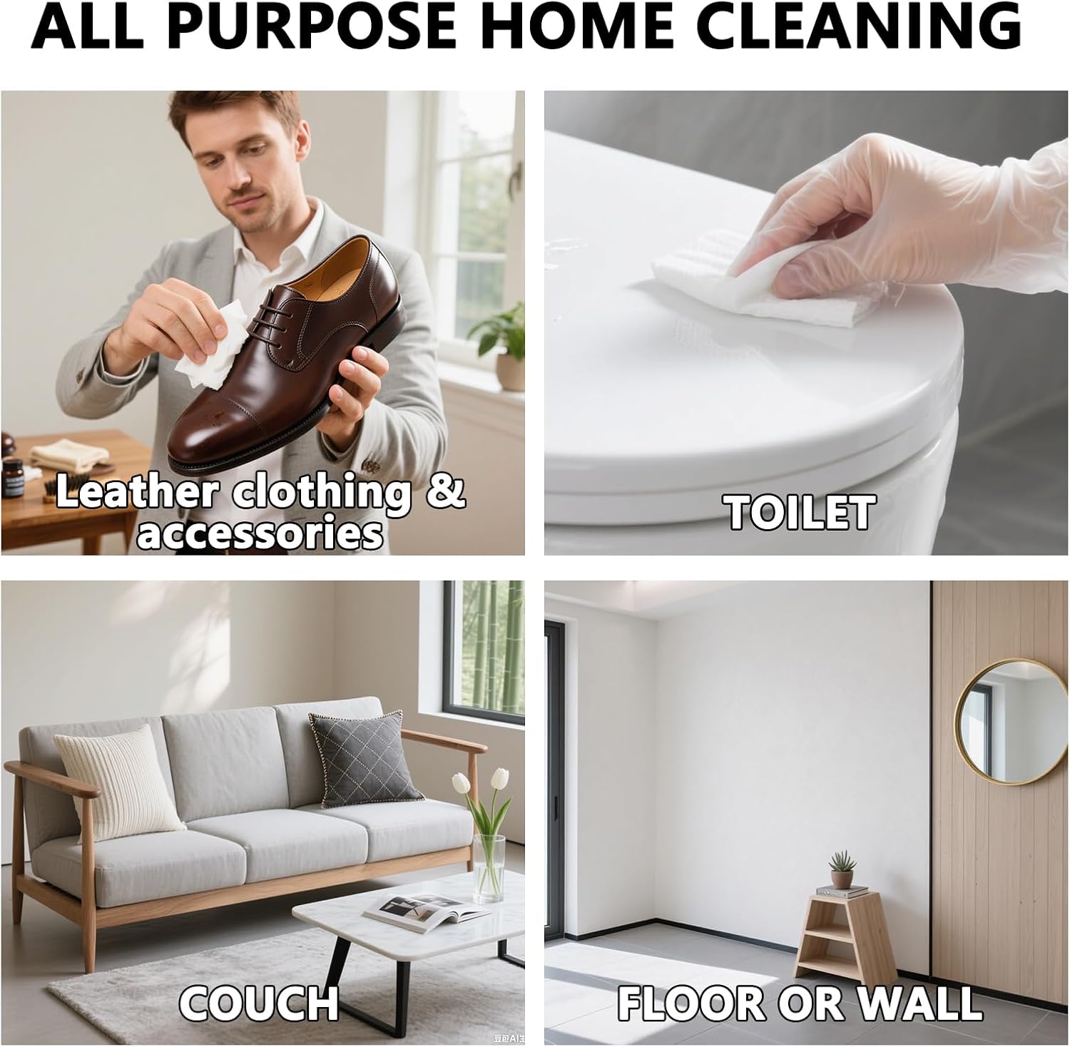 - MULTI-PURPOSE CLEANING: All-Purpose Cleaning Wipes, Effectively cleans and maintains car interiors including leather seats, dashboard, steering wheel, and other surfaces like sofas and tables