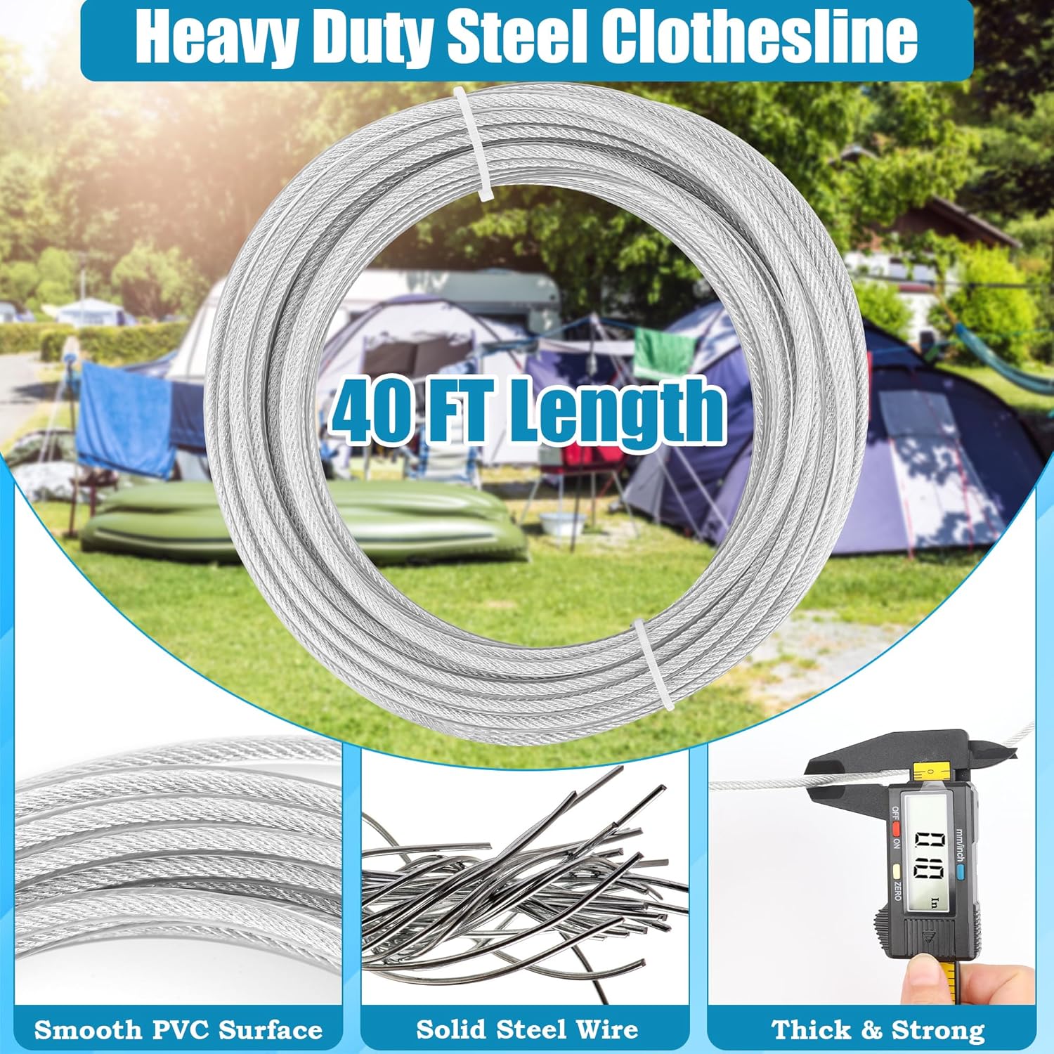 - 【20FT/ 40FT Rope Kit】: Package included 1 20-foot/ 40-foot camping clothes lines, 1 ratchet pulley, 2 metal nails, and 2 buckles. The complete set allows for quick assembly and conveniently dries more clothes