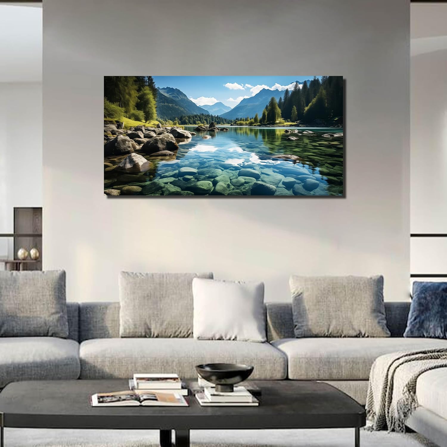 GUGIKA Landscape Wall Art for Living Room, Mountain and Lake Wall-Decor for Bedroom, Natural Scenery Canvas Prints Pictures for Hallway Office, Size 48 x 24 Inches